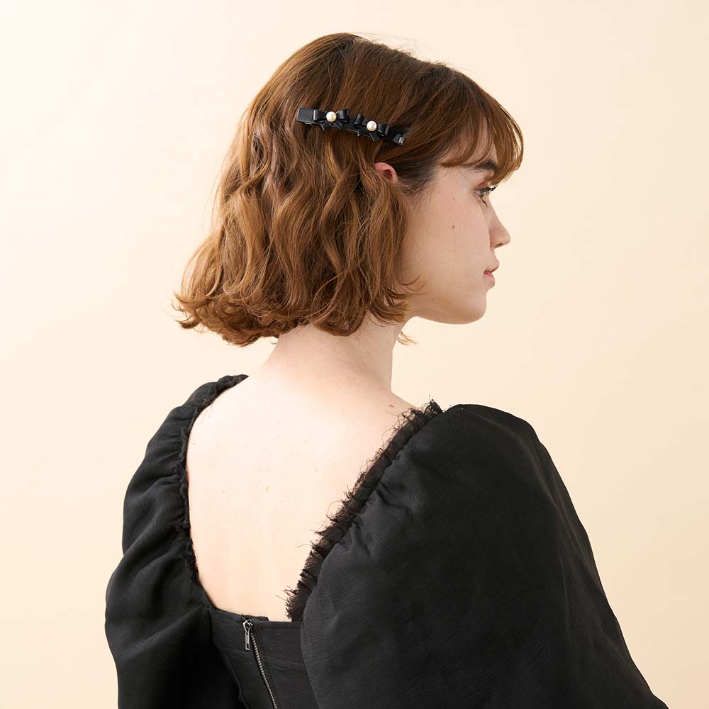 Die POÉSIE Haarspange 8 cm stammt aus der „Confrontation“-Kollektion, die die stille Begegnung zwischen Menschen und künstlicher Intelligenz in ästhetischer Form interpretiert. Die Linie setzt auf klare Formen und raffinierte Details: Eine fein gearbeitete Schleife, farblich perfekt abgestimmt, wird in der Mitte durch eine leuchtende Perle akzentuiert und verleiht dem Accessoire einen zarten, poetischen Charakter.