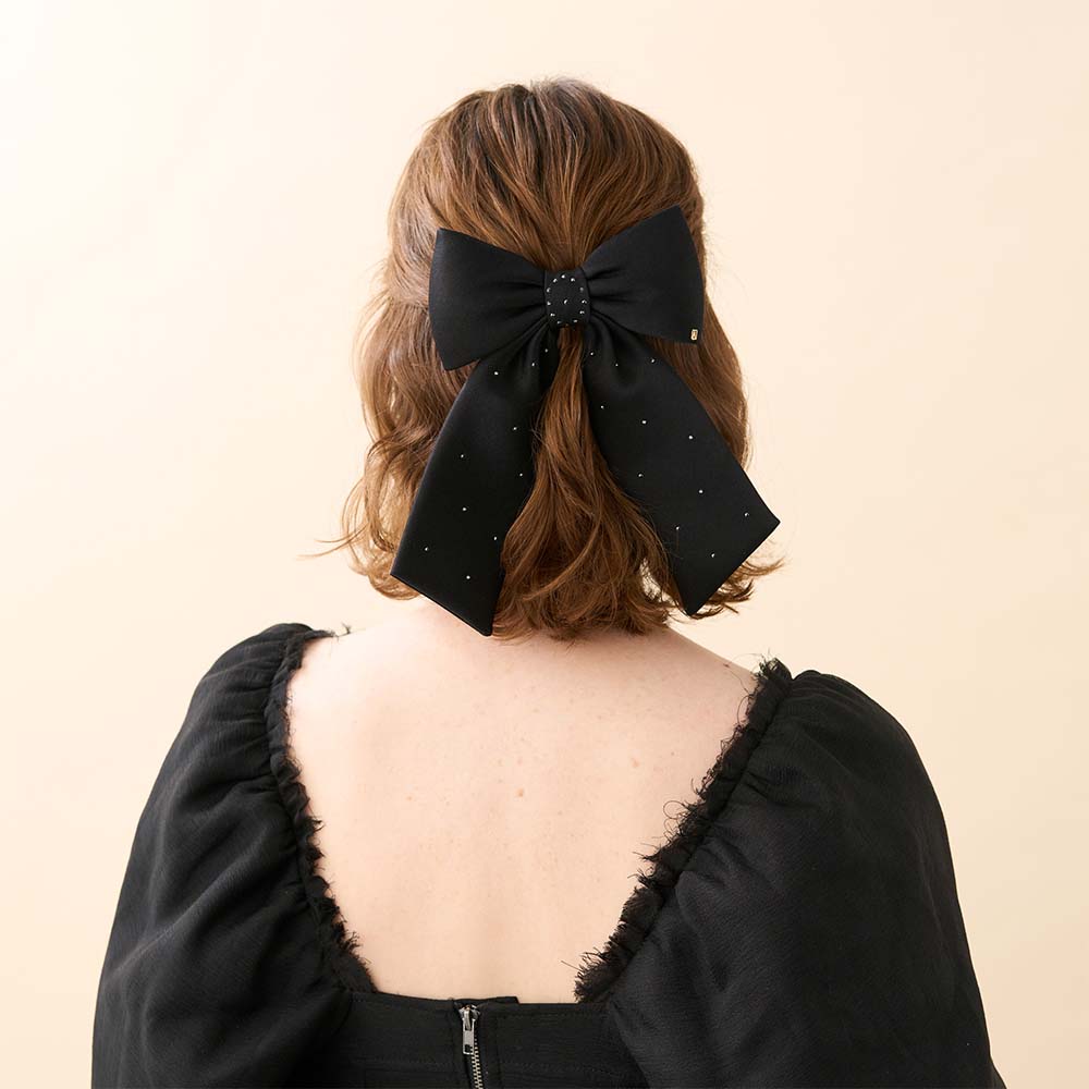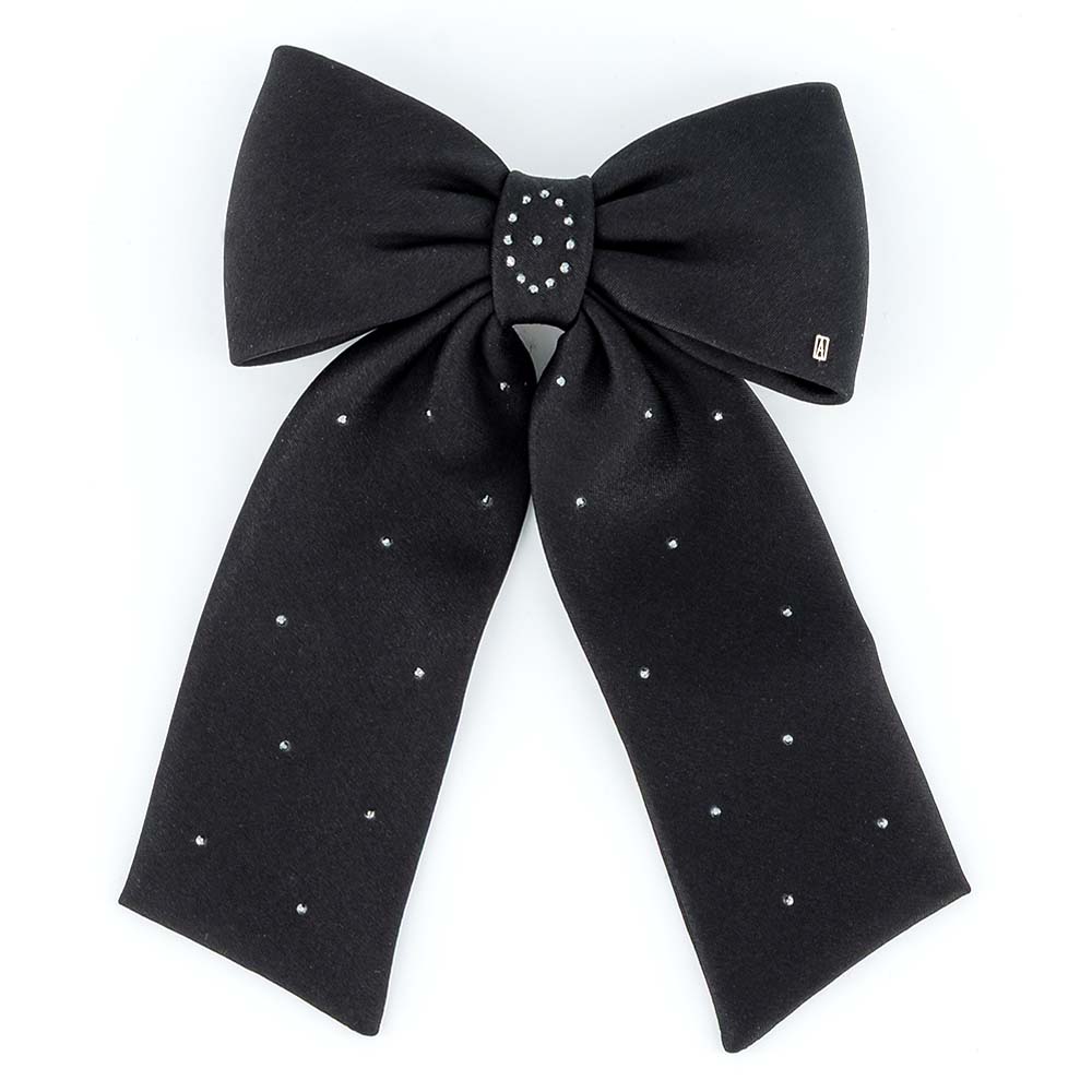 Die Linie SOUS LE SAPIN besteht aus 100 % Seide und überzeugt durch ihre luxuriöse Textur. Erhältlich in tiefem Schwarz oder leuchtendem Türkis, fängt die Oberfläche das Licht auf zarte Weise ein. Fein gesetzte Kristalle unterstreichen die Silhouette mit kostbaren Akzenten und verleihen der Haarspange eine außergewöhnliche Ausstrahlung.