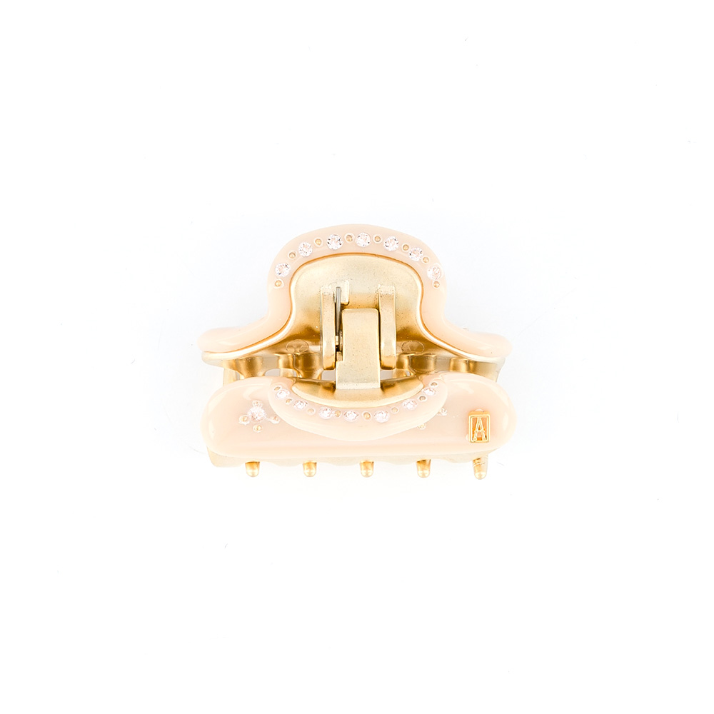 Jede Pince Vendôme SOLEIL LEVANT „Strassblumen“ entsteht in Frankreich in sorgfältiger Handarbeit. Die vergoldeten Zähne aus ABS sorgen für Stabilität, die Flügel aus Acetat – gewonnen aus Baumwollblüten- und Holzzellstoffen – verleihen der Klammer ihre edle Haptik. Präzise gesetzte Swarovski-Kristalle unterstreichen den luxuriösen Charakter.