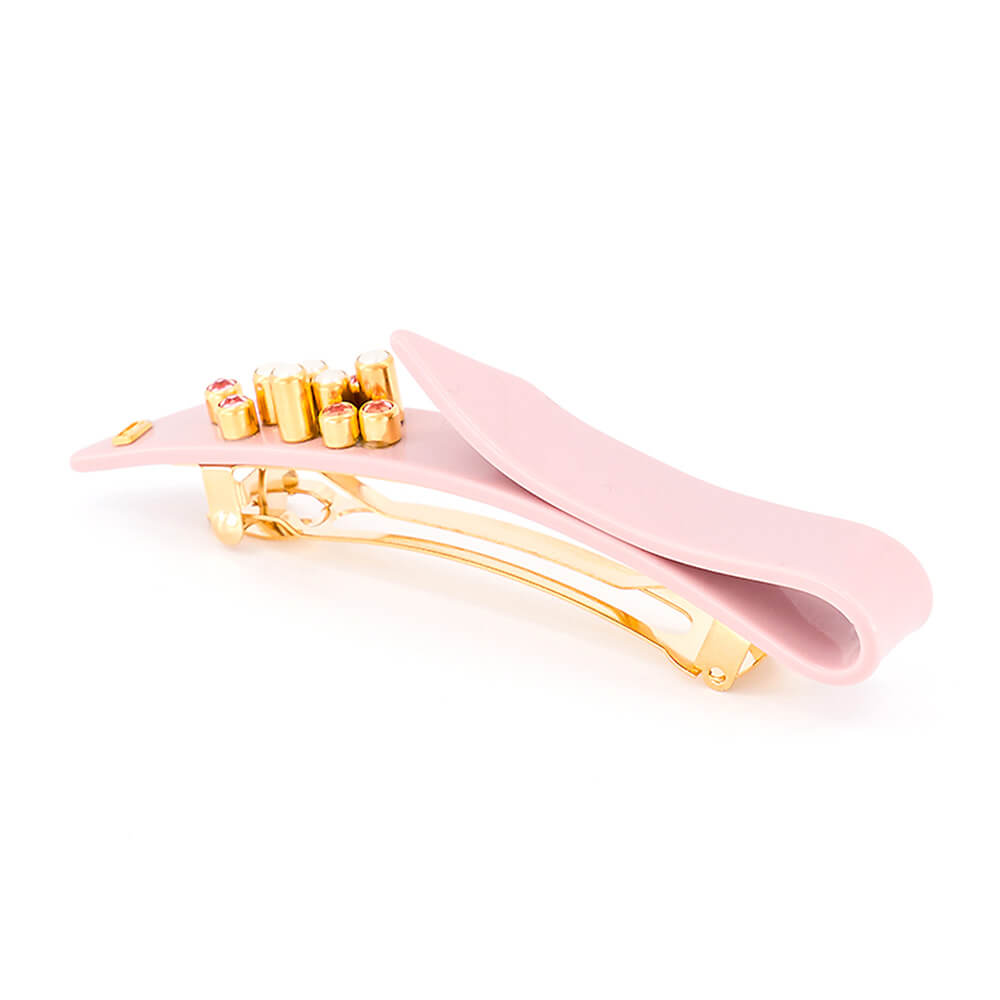 Die Haarspangen von Alexandre de Paris sind durch den praktischen Patentverschluss einfach zu handhaben. Diese Größe eignet sich bei mitteldichtem Haar, unter anderem für Ponytail oder auch Hochsteckfrisuren, bei sehr dichtem Haar für Teilfrisuren.